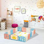Corral de juegos didáctico + Alfombra Antigolpes 200x240x48cm Brinda a tu bebé un espacio seguro y divertido donde explorar y jugar sin preocupaciones. Este corral de juegos combina comodidad, seguridad y diseño práctico, ofreciendo tranquilidad para los padres y entretenimiento para los más pequeños Características: • Plegable y portátil: Fácil de guardar y llevar a cualquier lugar; las almohadillas antideslizantes/anti rayaduras funcionan en cualquier superficie interior/exterior. • Resistente y seguro: Mantiene su forma y posición gracias a sus fuertes conectores de bisagra y almohadillas antideslizantes; incluye una puerta con cerradura de seguridad que permite un acceso conveniente y asegura a su bebé en el interior. • Configuración personalizada: simplemente expanda los paneles plegados hasta obtener la configuración deseada y ajuste las bisagras para estabilizarlos; No se requieren herramientas. (Los paneles individuales son extraíbles). • Tapete antigolpes: comodidad y protección extra para tu bebé. Medidas producto armado: 200x240x48 cm Peso: 14 kg Medidas Packing: 85x50x53 cm Peso: 15 kg
