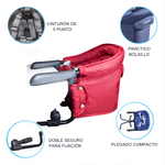 Silla de Comer Eat & Bear Roja Sujeción de Mesa Portable Comoda y practica silla de comer portátil capaz de sujetarse a mesas con un espesor entre 0,8 a 3,3 cm. Fácil de transportar gracias a su tamaño, salir a comer afuera no volverá a ser tema.
