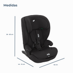 - Compartimentos específicos permiten guardar el arnés de 5 puntos cuando pasa a utilizarse como asiento elevador