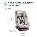 Silla de Auto Convertible 360° Isofix Supra Gris claro