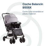 Coche Cuna Paseo Balancin SX Gris Melange Descubre el nuevo coche balancín Bebesit B50SX, diseñado para brindar comodidad y seguridad a tu bebé. Ideal para paseos y siestas, este coche cuna es perfecto para uso en exteriores e interiores. Fabricado con una estructura metálica de alto rendimiento y materiales seguros, es duradero y funcional, con un peso neto de 8.1 kg. Sus dimensiones de 50 cm de ancho x 65 cm de profundidad x 109 cm de alto lo hacen ideal para cualquier espacio.