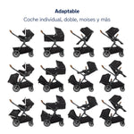 No puedes controlar el destino, pero ahora puedes estar preparado para un gran paseo que te espera. Elige entre dos cubiertas intercambiables para crear el máximo confort personalizado para tu bebé. Nuestro innovador MagneTech Secure Snap™ hace que sacar a tu pequeño sea tan rápido y fácil como meterlo. Y la Custom Dual Suspension™ proporciona el mejor paseo para el bebé y para ti. Con un asiento para todas las estaciones, un elegante sistema de almacenamiento y la posibilidad de ampliarlo a doble o incluso a gemelar, la DEMI™ grow realmente lo tiene todo, sin importar lo que el destino te depare. Diseñada para tu futuro. *Accesorios no incluidos.