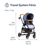 Coche Cuna travel system Fénix Azul El Coche Travel System Fénix será su compañero desde que el bebé nace. Cuenta con un moisés completamente reclinable para que el bebé está acostado y cómodo en su coche. Destaca por sus suaves colores y práctico diseño.