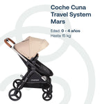 Coche Cuna travel system Mars LX Beige Para paseos más cómodos y seguros con el nuevo coche Travel System Mars Lx. Desde recién nacido en la silla de auto hasta los 15 kilos del bebé, pasando por el uso del moisés con su reclinado total, desliza y descúbrelo!
