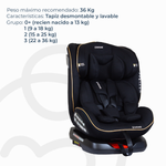 Silla de Auto Convertible Supra 360° Black Gold La silla de auto Supra Premium destaca por su giro en 360° y su protección contra impactos laterales haciendo más fácil la instalación de la silla en el vehículo y asegurar a tu pequeño en la silla. Adicional a eso es posible su uso a contra marcha desde nacimiento hasta los 18 Kilos con isofix más toptheater