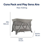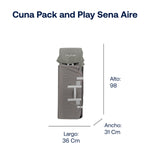 Cuna Pack and Play Sena Aire Frost Transforma cualquier cuarto en la habitación de tu bebé en cuestión de segundos. Tanto si se trata de una reunión familiar, como de las primeras vacaciones del bebé junto al mar, SENA™ aire es su indispensable compañero de viaje. Su exclusivo diseño de patas en zigzag se abre fácilmente de manera suave y resistente. Luego se vuelve a plegar con una sola mano para un fácil guardado Su revolucionario diseño también es evolutivo: crece más allá del recién nacido hasta la niñez, e incluso se dobla como espacio de juego. Que empiece el viaje.