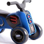 Corre Pasillo Ride Azul Bebesit La modalidad para niños es mucho más que un corre pasillo; es la puerta de entrada a un mundo de diversión y aventuras para los más pequeños. Su estructura de plásticos pulidos de alta resistencia, sin bordes, garantiza una experiencia segura y llena de emociones. Con un diseño realista que estimula la imaginación de los niños, este corre pasillo ofrece una experiencia emocionante. El manillar de agarre está diseñado pensando en la comodidad y seguridad de los niños, permitiéndoles sostenerse mientras exploran con confianza. Sus 4 ruedas de alto tráfico aseguran un desplazamiento suave y seguro en cada aventura. Recomendado para niños de 3 a 5 años, este corre pasillo es el compañero perfecto para sus primeros pasos en la exploración y el descubrimiento. Con un peso máximo recomendado de 20 kg, las medidas del artículo armado lo hacen ideal para adaptarse fácilmente al espacio de juego de los niños, con dimensiones de 57 cm de largo, 7 cm de ancho y 27 cm de alto. Con tan solo 2 kg de peso, es ligero y fácil de mover, fomentando la independencia y la diversión de los pequeños aventureros.