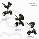 Coche Cuna Travel System Offroad Negro Este coche 3 en 1 está diseñado para transformar cada paseo con tu bebé en una experiencia inolvidable. Su combinación de elegancia, comodidad y seguridad te permite disfrutar de cada momento con tranquilidad y estilo. Funciona como Coche Travel System, Moisés y Coche de Paseo, adaptándose a todas las etapas y necesidades de tu pequeño. Desde sus materiales premium hasta su diseño ergonómico, cada detalle está pensado para el bienestar de tu bebé. Con este coche, cada salida será una aventura llena de amor y confianza.