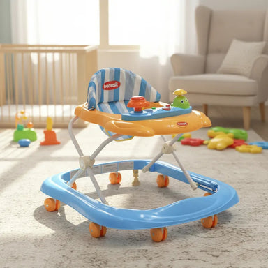 Andador Moby 7106 Amarillo Características: • Asiento acolchado desmontable • 8 ruedas de alto trafico • Articulo Plegable ultra compact...