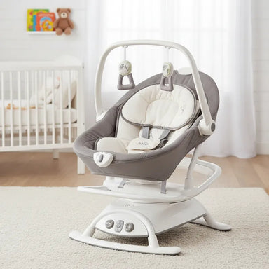 Sillas Nido y Bouncers con movimiento natural, diseño ergonómico y materiales suaves.