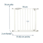 Reja de Seguridad Bebe Mascota Doble Seguro 75 a 82 cm Proporciona tranquilidad y protección, creando un entorno seguro para tu pequeño mientras explora su hogar. Características: Material de acero tubular de máxima resistencia. Color blanco adaptable a cualquier decoración. Resistente y duradero para uso prolongado. Instalación sin perforación. Doble bloqueo de seguridad. Apertura en ambas direcciones. Incluye 4 piezas de perilla y 4 piezas de goma. Dimensiones del artículo: Alto: 76 cm. Ancho: ajustable de 75 a 82 cm. Barra lateral superior: 70 cm. Fondo: 2 cm. Separación entre barrotes: 6.2 cm. Peso: 4.1 kg. Dimensiones del empaque: 75 x 82 x 4 cm. Peso: 5 kg.