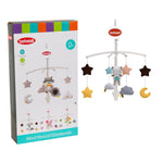 Móvil Osito del Bosque Este móvil dará a tu bebe diversión con sus personajes, cada uno de ellos de suaves texturas, colores logrará atraer la atención del bebe. Ayuda a tu bebé a enfocar objetos y seguirlos con la mirada, fortaleciendo la percepción espacial, los músculos de los ojos y la vista, proporciona un efecto tranquilizante y relajante: Combinando música y movimiento, el móvil se convierte en un elemento estable, familiar y amistoso para tu bebé.