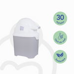 Experimente la máxima comodidad con nuestro Contenedor de Pañales Bebesit. Con solo soltarlo y girarlo, nuestro exclusivo sistema de pesas cilíndricas se mueve con la apertura y el cierre, presionando el pañal hacia abajo y sellando la abertura herméticamente, impidiendo la salida de olores.