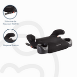 Alzador Isofix Negro Bebesit El alzador ISOFIX combina seguridad y confort para los más pequeños, diseñado para niños de 15 a 36 kg. Su sistema de anclaje ISOFIX garantiza máxima estabilidad, mientras que su tapiz desmontable facilita la limpieza. Incluye prácticos portavasos para mayor comodidad durante los viajes. Ideal para padres que buscan tranquilidad y protección en cada trayecto