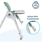 Silla de Comer EasyFeed Verde La Silla de Comedor EasyFeed de Bebesit es el espacio perfecto para que tu bebé disfrute de sus primeras comidas junto a la familia. Pensada para acompañar a tu pequeño desde los 7 meses, su diseño envolvente y acolchado lo mantiene seguro y cómodo mientras descubre nuevos sabores. Con un respaldo desmontable, reposapiés ajustable y bandeja de alimentos en 3 posiciones, hace que cada comida sea un momento especial y lleno de amor. Fácil de limpiar y diseñada para durar, es una compañera confiable en cada etapa de su crecimiento.