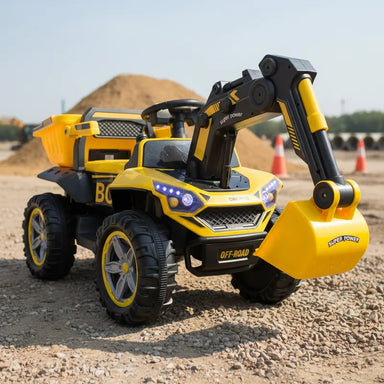 La diversión se convierte en construcción. Esta retroexcavadora eléctrica infantil todoterreno invita a los pequeños a explorar su imaginación mie...