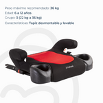 Alzador Isofix Rojo Bebesit El alzador ISOFIX combina seguridad y confort para los más pequeños, diseñado para niños de 15 a 36 kg. Su sistema de anclaje ISOFIX garantiza máxima estabilidad, mientras que su tapiz desmontable facilita la limpieza. Incluye prácticos portavasos para mayor comodidad durante los viajes. Ideal para padres que buscan tranquilidad y protección en cada trayecto