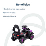 Auto Correpasillo Eléctrico Cruiser Morado Bebesit Descubre la diversión con el Auto Correpasillo Eléctrico Cruiser Morado de Bebesit! Este correpasillo combina emoción y seguridad con su toldo protector UV y su diseño realista. Los padres pueden guiar a sus pequeños con el manillar de empuje, o dejar que disfruten de la conducción autónoma gracias a la batería y el control remoto. Ideal para niños de 2 años en adelante, es perfecto para paseos al aire libre llenos de aventuras. ¡La diversión está asegurada con Bebesit!