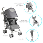 Coche Paragua Khronos Gris El Coche Paragua Khronos combina elegancia, comodidad y seguridad, brindando a tu bebé la protección y confort que necesita durante los paseos. Su diseño versátil y práctico asegura que tanto el bebé como los padres disfruten de cada salida, mientras el cochecito ofrece maniobrabilidad y fácil almacenamiento. Con una estructura duradera de aleación metálica, este cochecito es la opción perfecta para acompañar a tu pequeño desde los 6 meses hasta los 3 años.