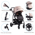 Coche Cuna travel system Explorer LX Beige ¡Embárcate en aventuras inolvidables con el Coche Travel System Explorer LX de Bebesit! Diseñado para enfrentar cualquier terreno, su estructura robusta y manillar ergonómico ajustable te brindan un control óptimo en cada paseo. Con múltiples posiciones de reclinado y un toldo de 3 paneles con visor, tu pequeño viajará cómodo y protegido en todo momento. La versatilidad es clave: la silla del coche se convierte en un acogedor moisés, mientras que las sillas reversibles y desmontables se adaptan al crecimiento de tu bebé. Equipado con freno centralizado, cinturón de seguridad de 5 puntas y canasto multipropósito, este sistema es la elección perfecta para familias activas que aman disfrutar su tiempo al aire libre. ¡Descubre la libertad de viajar con estilo y seguridad con el Travel System Explorer LX!