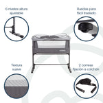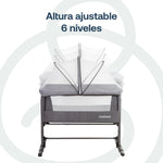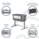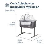 Cuna Colecho con Mosquitero MySide LX Gris Bebesit ¡Descubre el moisés ajustable para un mejor sueño del bebé! Este producto es fácil de armar y utilizar, con altura ajustable en 6 posiciones independientes y una inclinación que facilita un mejor descanso. También puede usarse como moisés de forma independiente. Su plegado compacto lo hace práctico para cualquier espacio. Incluye 2 juegos de correas para fijar la cuna a la cama de los padres y es apto para su uso desde recién nacido hasta los 6 meses (9 kg). Mejores sueños seguros para tu bebé.