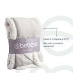 Manta Sherpa de polar - Gris Descubre la manta Bebesit Sherpa, diseñada para brindar calidez y confort a tu bebé. Hecha de 100% poliéster e hipoalergénica, con dimensiones de 91 cm x 127 cm, es perfecta para casa o paseo. Lavable a máquina y secable en secadora. Compacta y ligera Ideal para bebés de 0 a 24 meses.