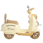 Moto a Batería Scooter Beige Bebesit Moto scooter con diseño realista. Proporciona movilidad para niños. Rueda para una mejor estabilidad. Manillar de fácil agarre. Peso recomendado: hasta 30 kg. Velocidad: 2 - 3 km/h. Uso continuo: 1 a 2 horas. Edades recomendadas: de 3 a 8 años. Luces frontales para mayor realismo. Espejos retrovisores. Estructura de alto tráfico. Entrada AC: 220V / Salida DC: 6V. Medidas del Producto Armado: Largo: 75 cm. Ancho: 38 cm. Alto : 66 Medidas del Embalaje: Largo: 76 cm. Ancho: 39 cm. Alto: 42 cm.