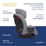 Silla de Auto Convertible Stages Gray Flannel Descubre la silla que acompañará a tu bebé desde el primer día hasta los 7 años, brindándote la tranquilidad de saber que siempre estará seguro y cómodo. Diseñada para crecer con tu pequeño, permite viajar a contramarcha hasta los 18 kilos, protegiendo su delicada cabeza, cuerpo y caderas. Con 4 posiciones de reclinado, asegura un viaje sereno y placentero. La tecnología Grow Together™ ajusta el reposacabezas y el arnés simultáneamente, sin complicaciones. Tejidos transpirables y ventilación lateral garantizan frescura y bienestar en cada paseo. ¡Una inversión en amor y seguridad! Codigo de certificación: 3CV-ASN-JO-C02-2019-290